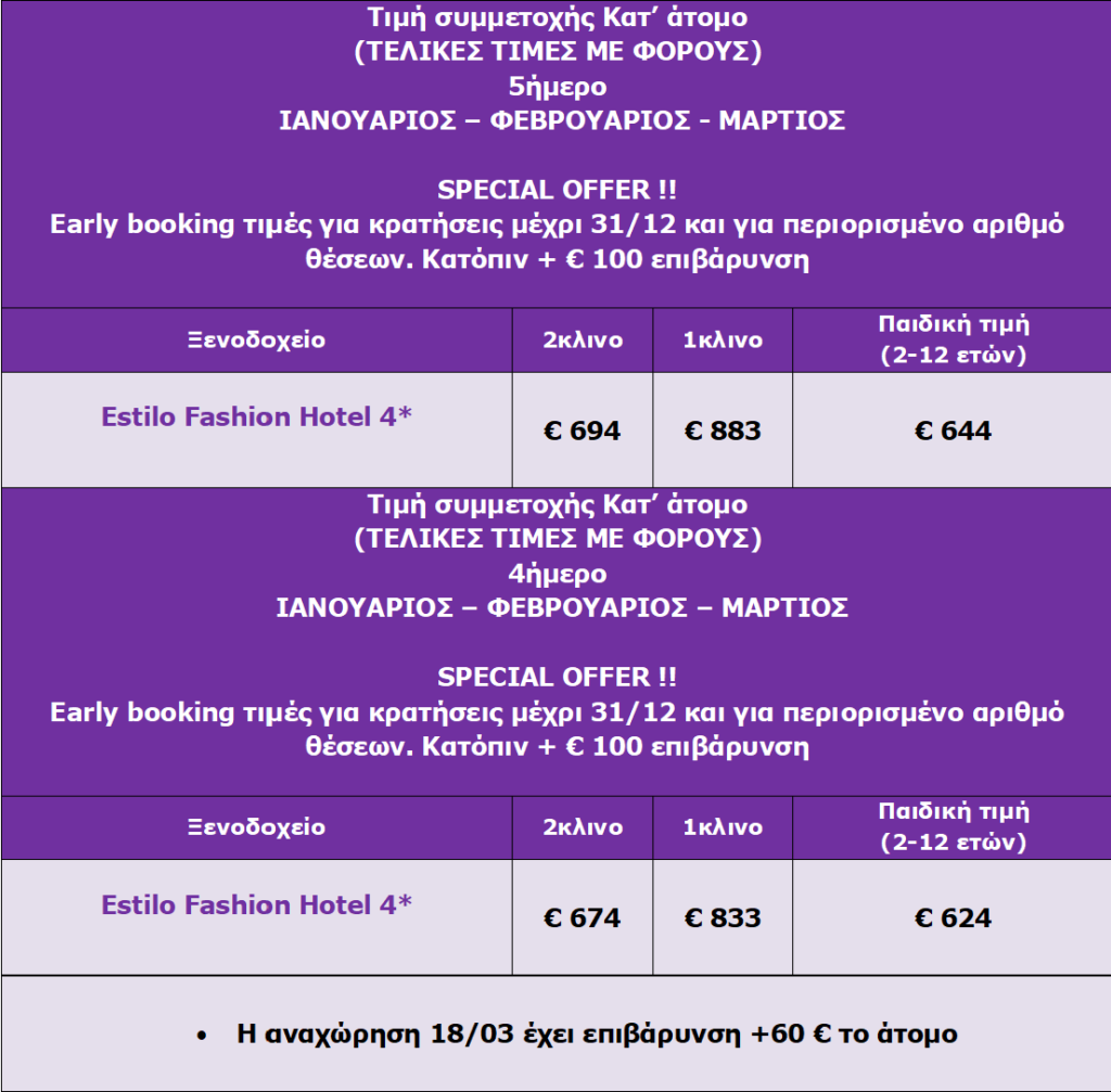 · Το 5ήμερο πρόγραμμα περιλαμβάνει μια επιπλέον ελεύθερη μέρα